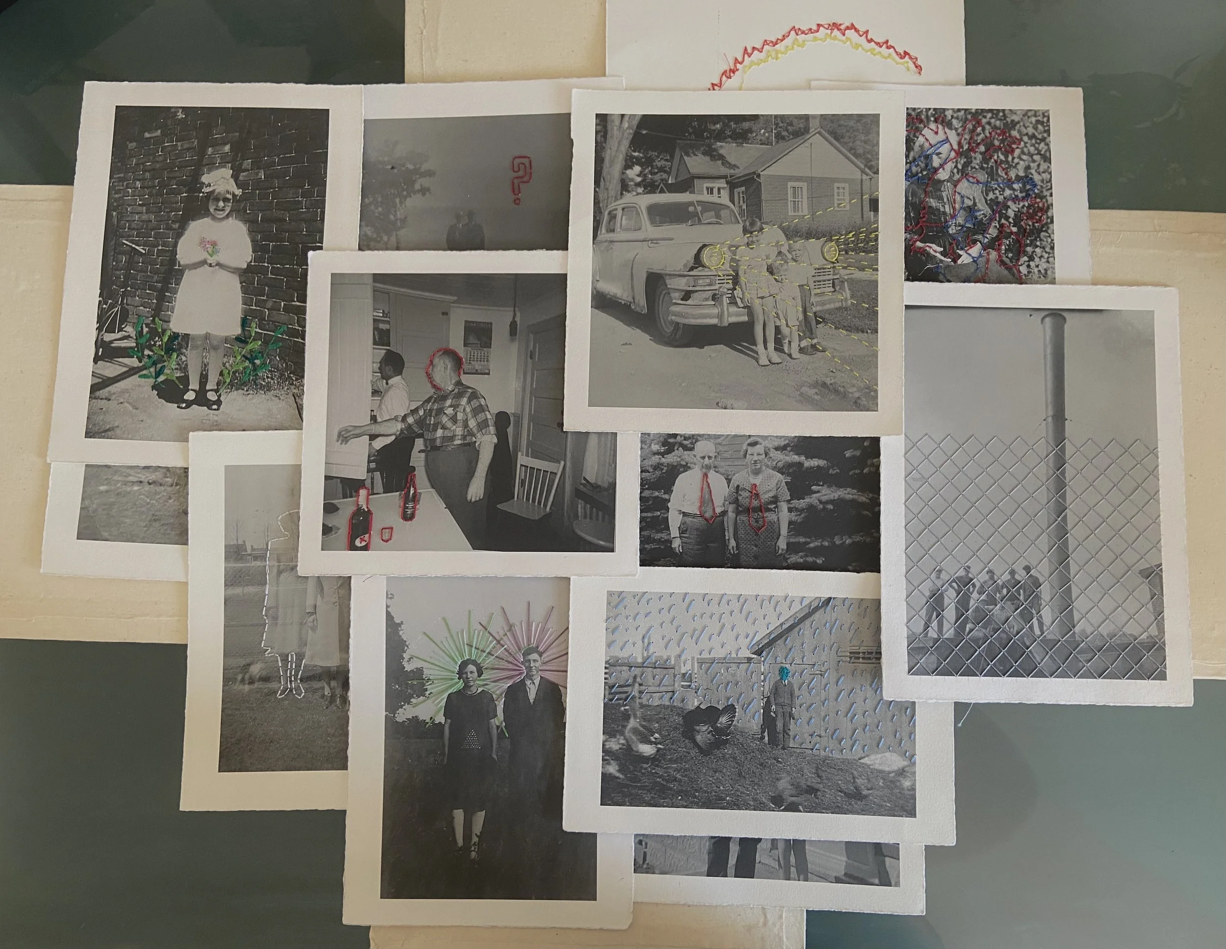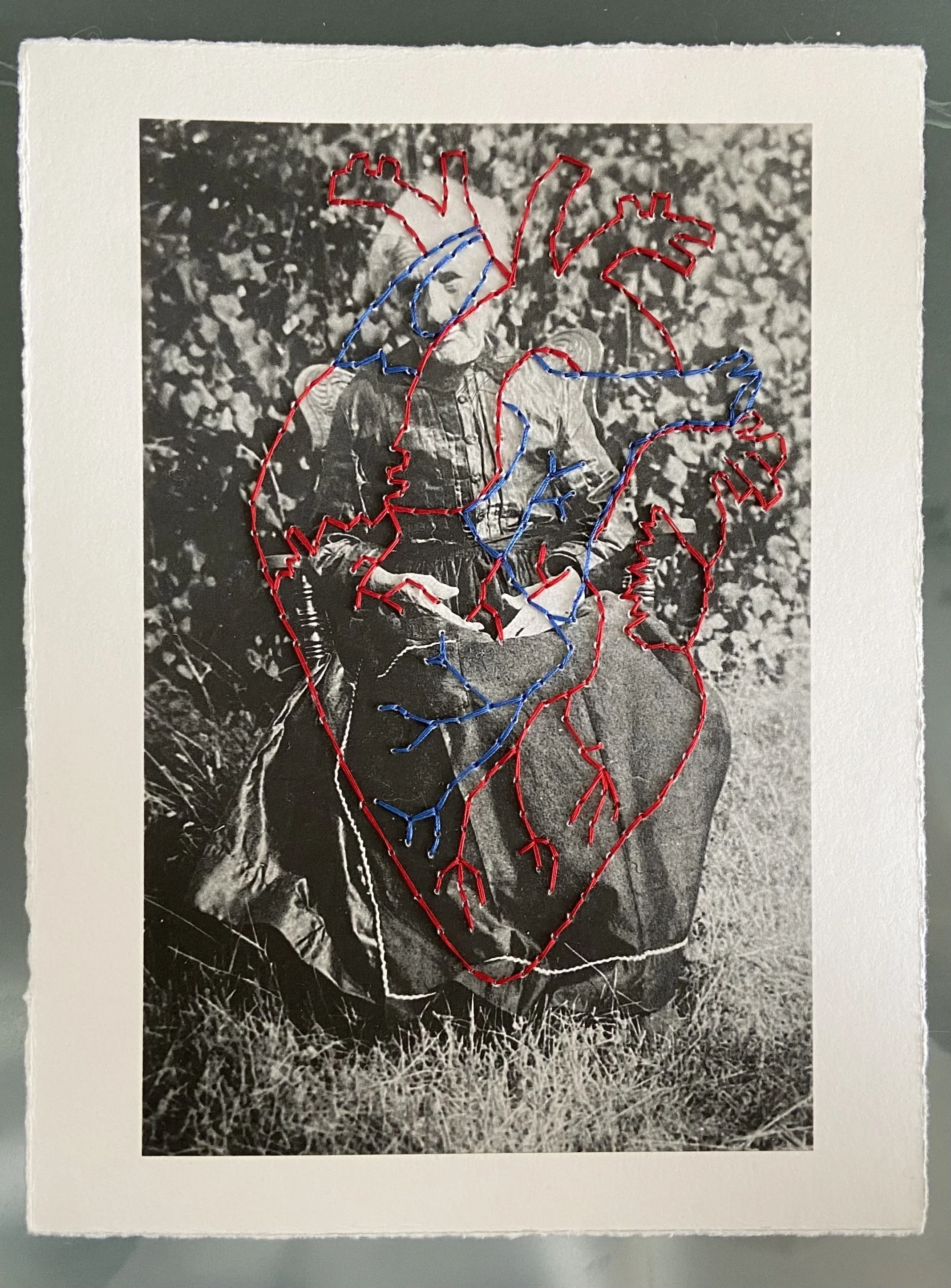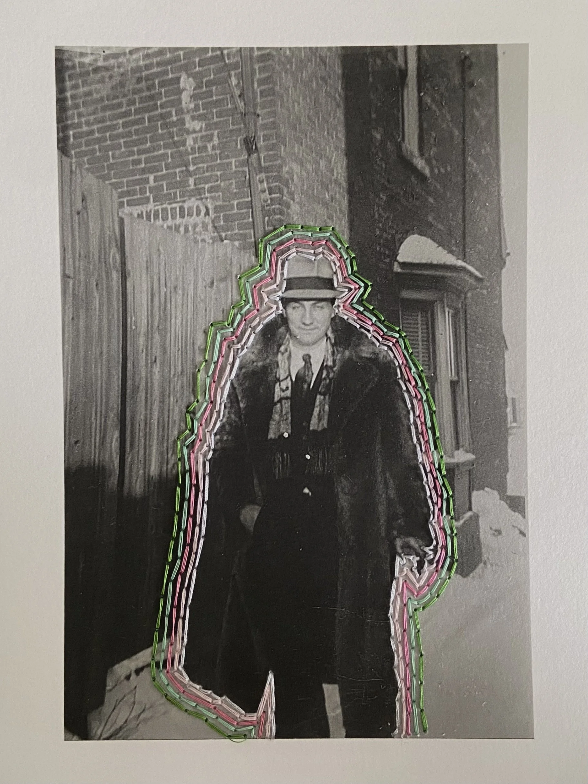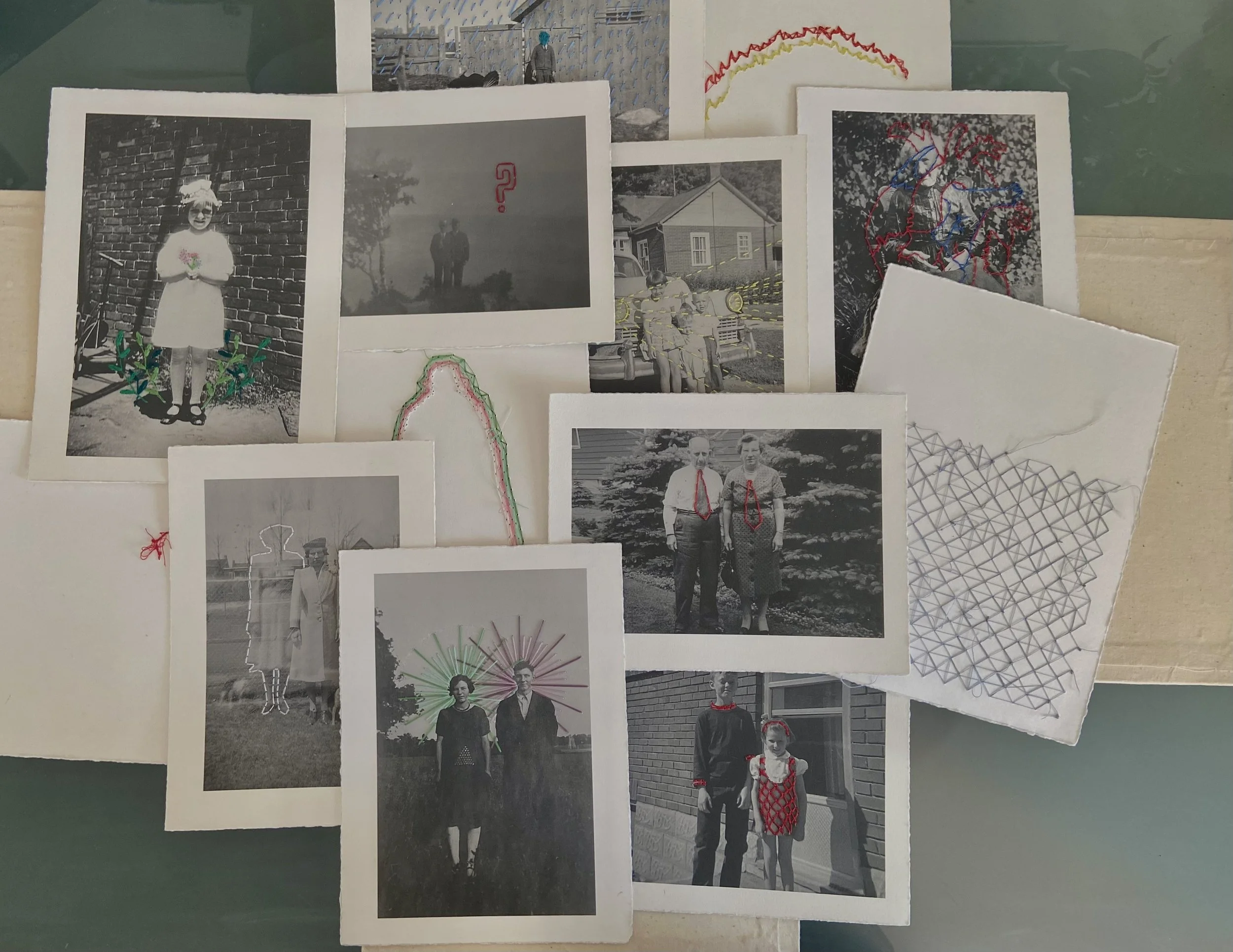 Old photographs have always fascinated me. Relics of a bygone era; leaving me with more questions than answers. Who were these people? Why was this picture taken? Within my own work I investigate these photographs as a site of memory. I find that there is an intrinsically cryptic quality to photographs wherein the meaning is often hidden. This peculiar quality is what draws me in and calls me to uncover more information. Where meaning is lost, I create my own. I embellish these photographs either through using embroidery to producing disfigurement or ornamentation. This process of transformation produces new meanings and captures my own reaction to these images.