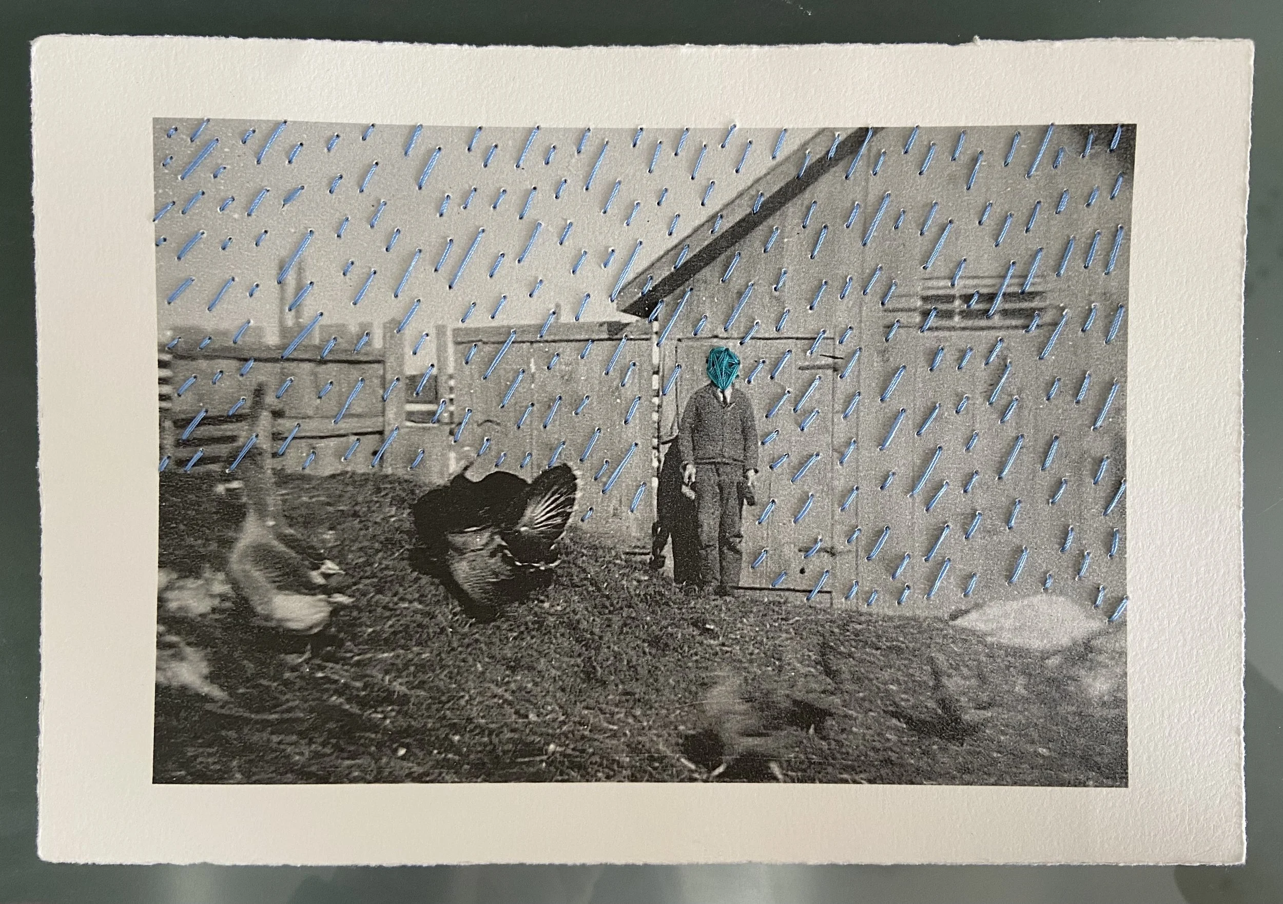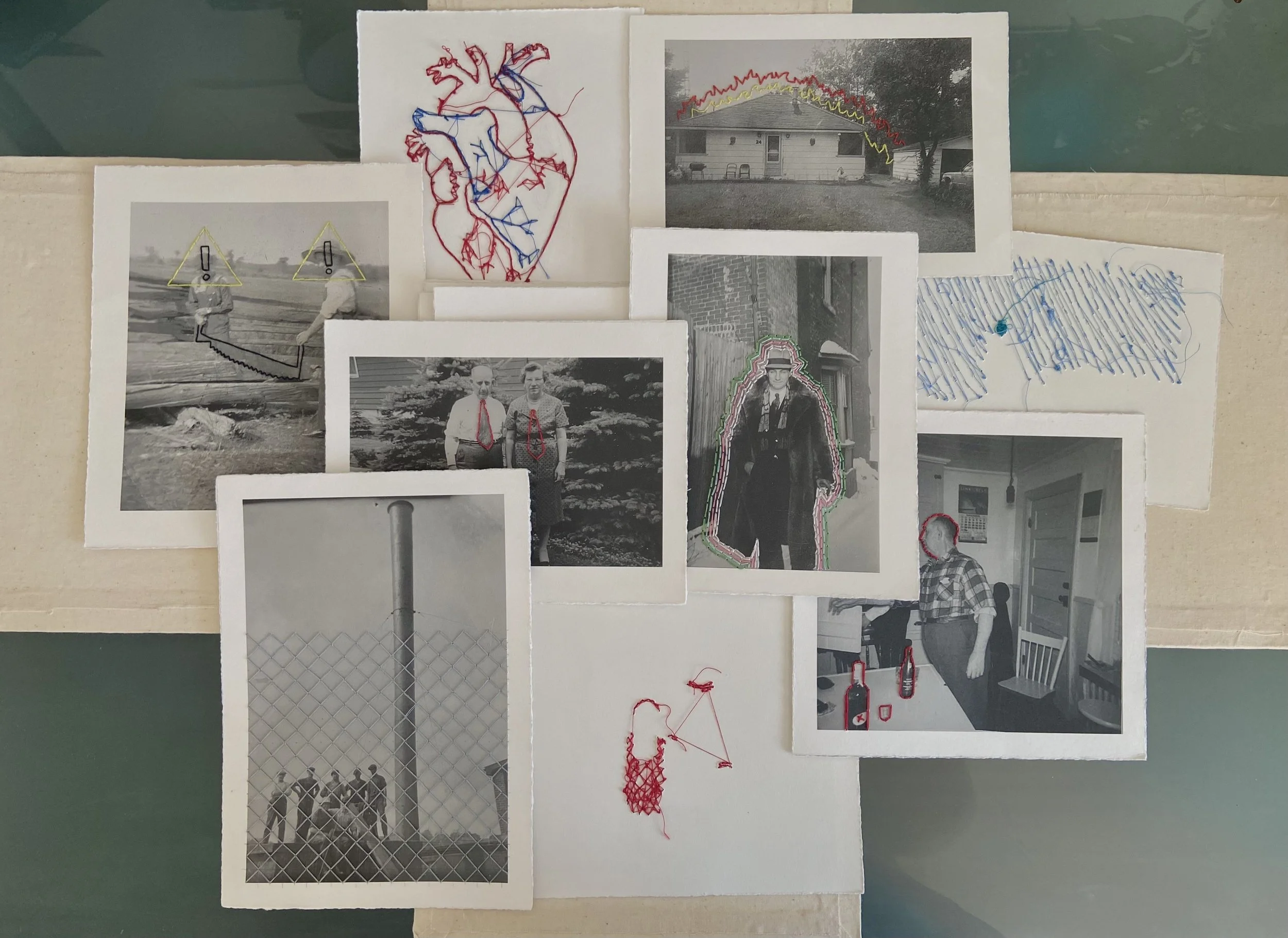 I utilize the melancholic atmosphere within these images to re-imagine the past and pose my own questions surrounding the values of a bygone era. In using embroidery I aim to allude to the generational and interpersonal ties being investigated within the work.