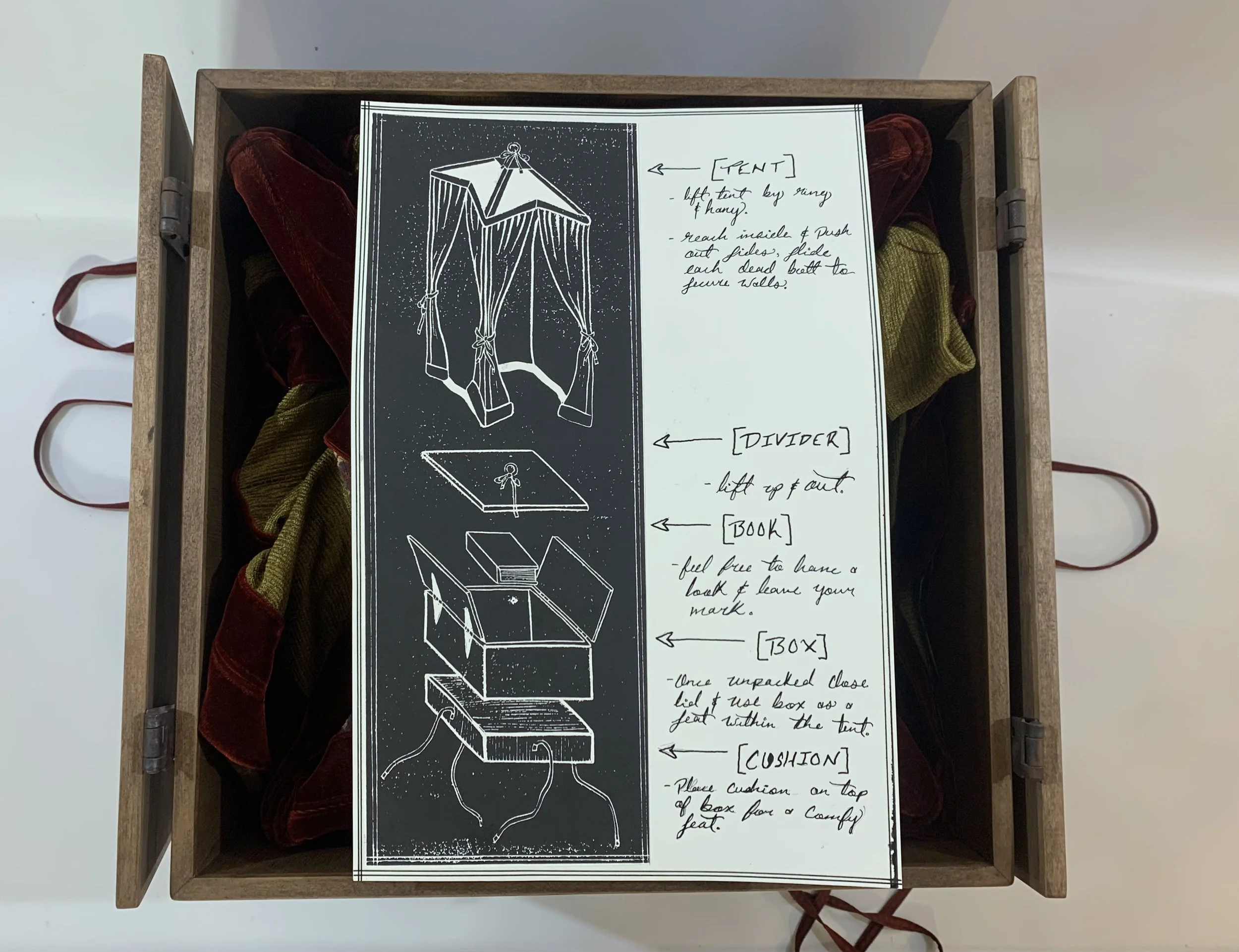 Today we are living in a world controlled by expectations, rules, and responsibilities. A world that is highly structured by deadlines, schedules, and routines. A world of politics, concerns, and issues. This tent is a means to escape and block out the world that lies beyond. Embracing the spectator within, the tent’s goal is to create a truly immersive experience for guests. With no distractions, guidelines to follow, or expectations, it is hoped that a truly unique and meaningful work will continue to grow, evolve, and be enjoyed by many.