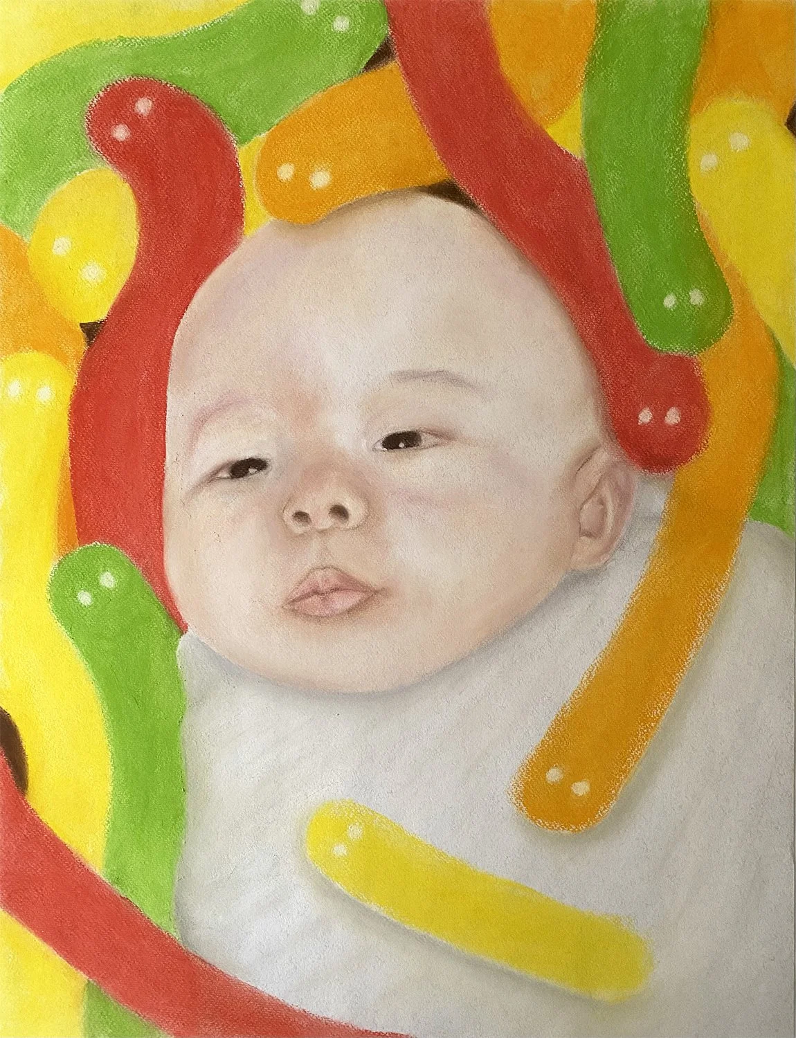 KATHY CHEN, 4, INFANT (PART OF A LARGER SERIES), SOFT PASTEL ON PAPER, 19.7x25.6, 2022.