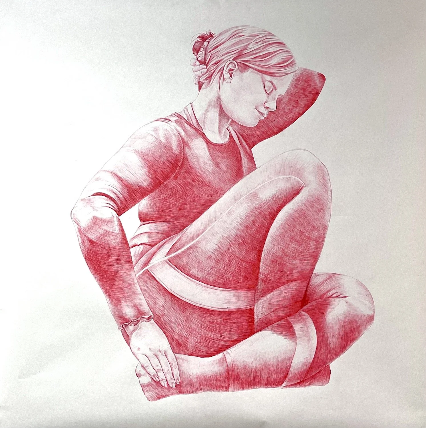 SHANNON CUPPLES, 4, THE RED NUDE, RED PEN ON PAPER, 48X48, 2022
