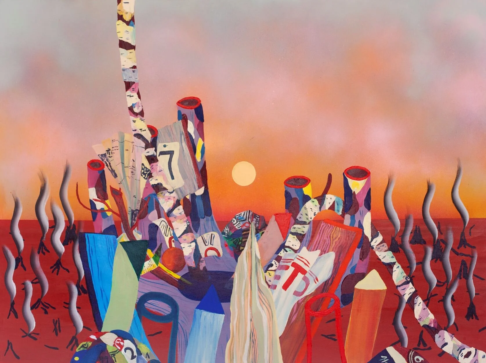 This series of abstract paintings employs a reverse painting methodology, using latex masking fluid, to arrive at compositions that can be considered as a type of eco-aware, existential landscape. Just as land is formed and reformed with each enacting relationship, the material and formal processes that these paintings are contingent upon mirror the making and unmaking state of all things.
