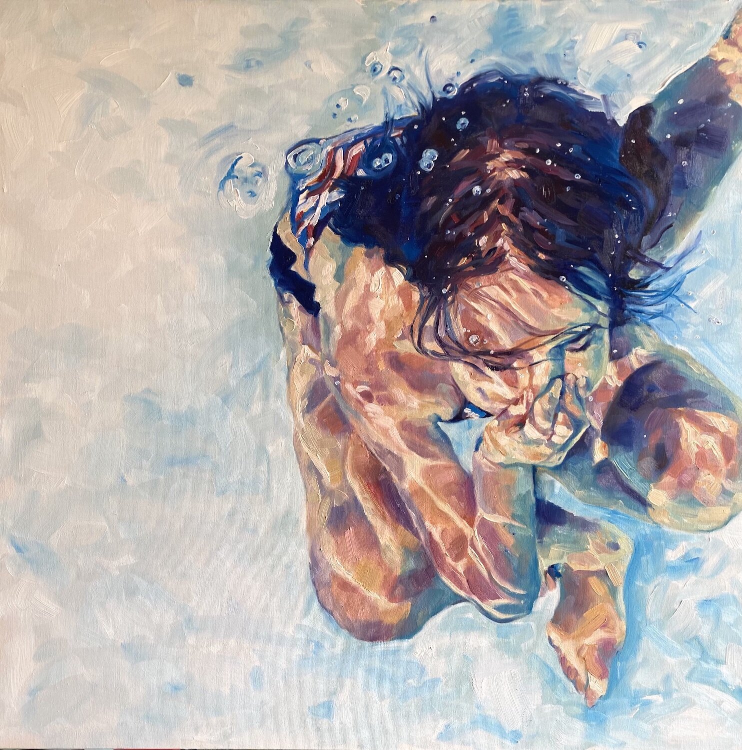 Corynn Kokolakis is a figurative painter whose practice explores the disparate roles of mother and artist. This work is a personal reflection on the tension of solitude and indefinite holding within a space of beauty, safety and comfort.