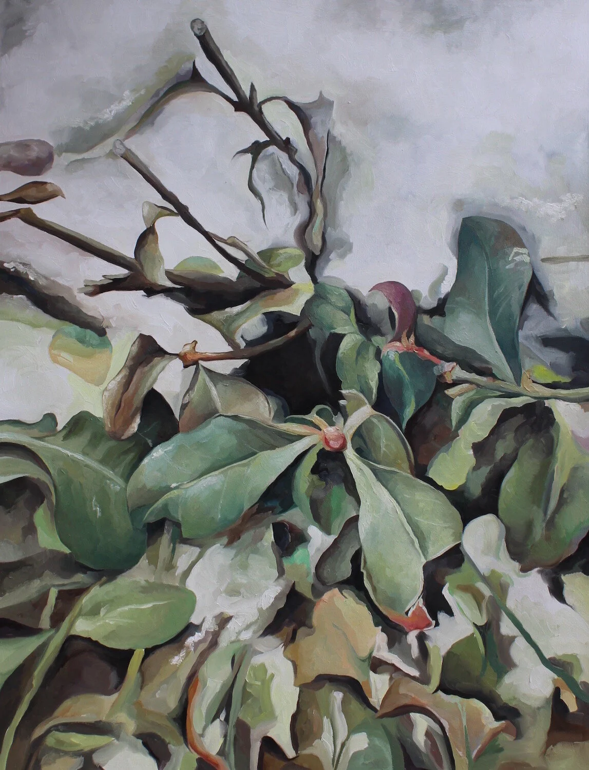 Buried Undergrowth is a series of paintings I created at the same time as the COVID-19 pandemic was occurring worldwide. This worldwide health emergency forced human communities to reverse all manner of communal expressions, i.e., exercise social distancing, avoid physical contact, cancel events, etc. Isolation became the defining character of responsible communities and interaction with nature increased. One of the few activities available for many during this time of separation has been walks in surrounding nature. This series underscores the fact that nature is ubiquitous and completely oblivious to human predicaments. Yet, when forced to strip social constructions, individuals in a community relate most closely to one another via the surrounding nature.