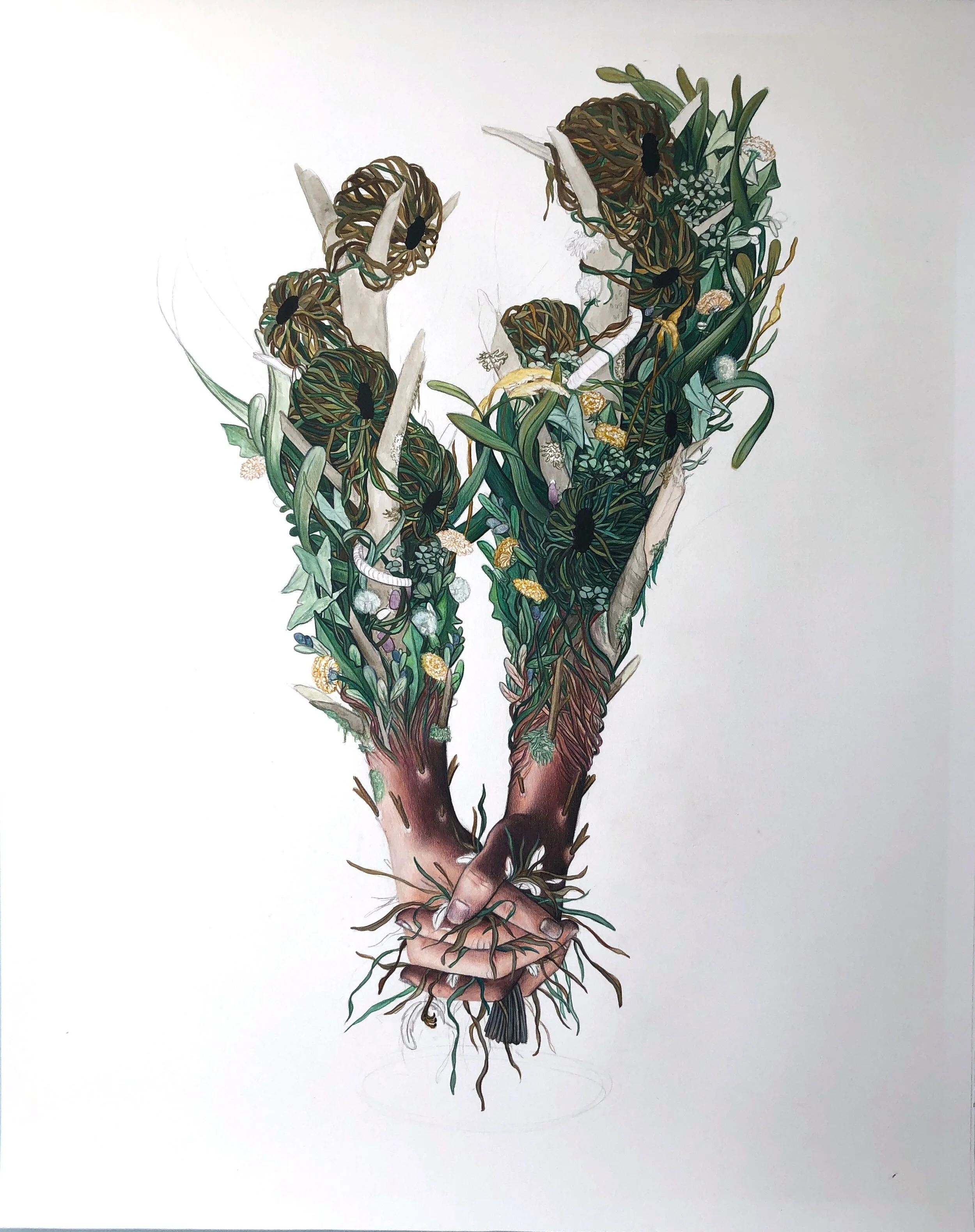 SIMON PELLERIN, 3RD YEAR, GET A GRIP, COLOURED PENCILS, MARKER, INK, 14” X 17”, 2021