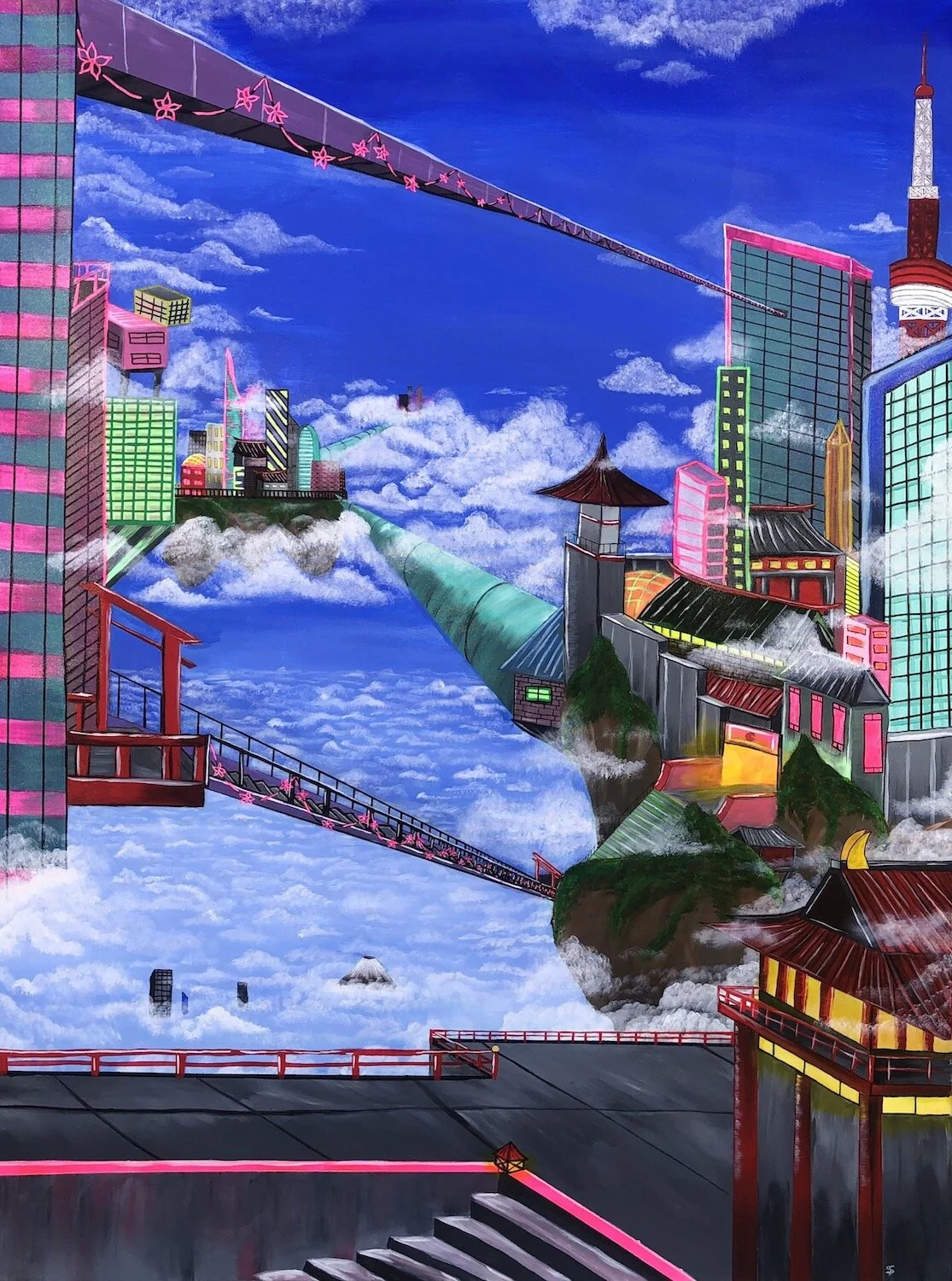 SASHA NANDAN-SUTHERLAND, 5TH YEAR, TOKYO 2.0, ACRYLIC PAINT, 48” X 36”, 2021
