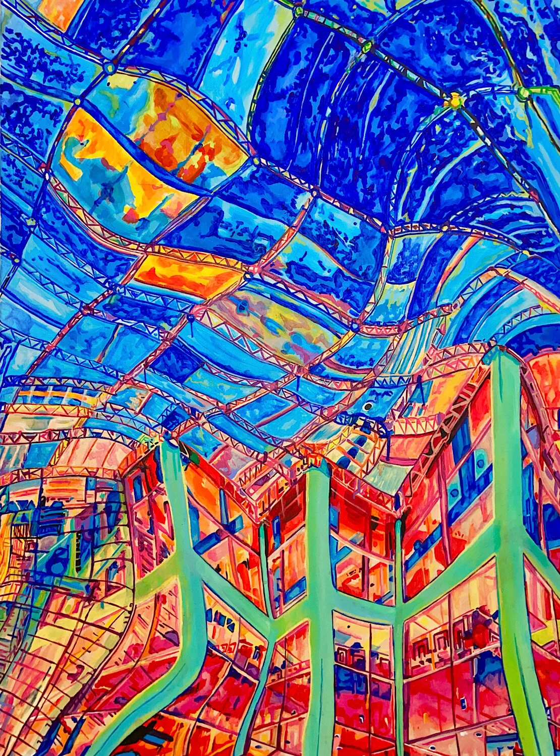 SASHA NANDAN-SUTHERLAND, 5TH YEAR, FUTURISTIC TORONTO, ACRYLIC PAINT, 30” X 24”, 2020
