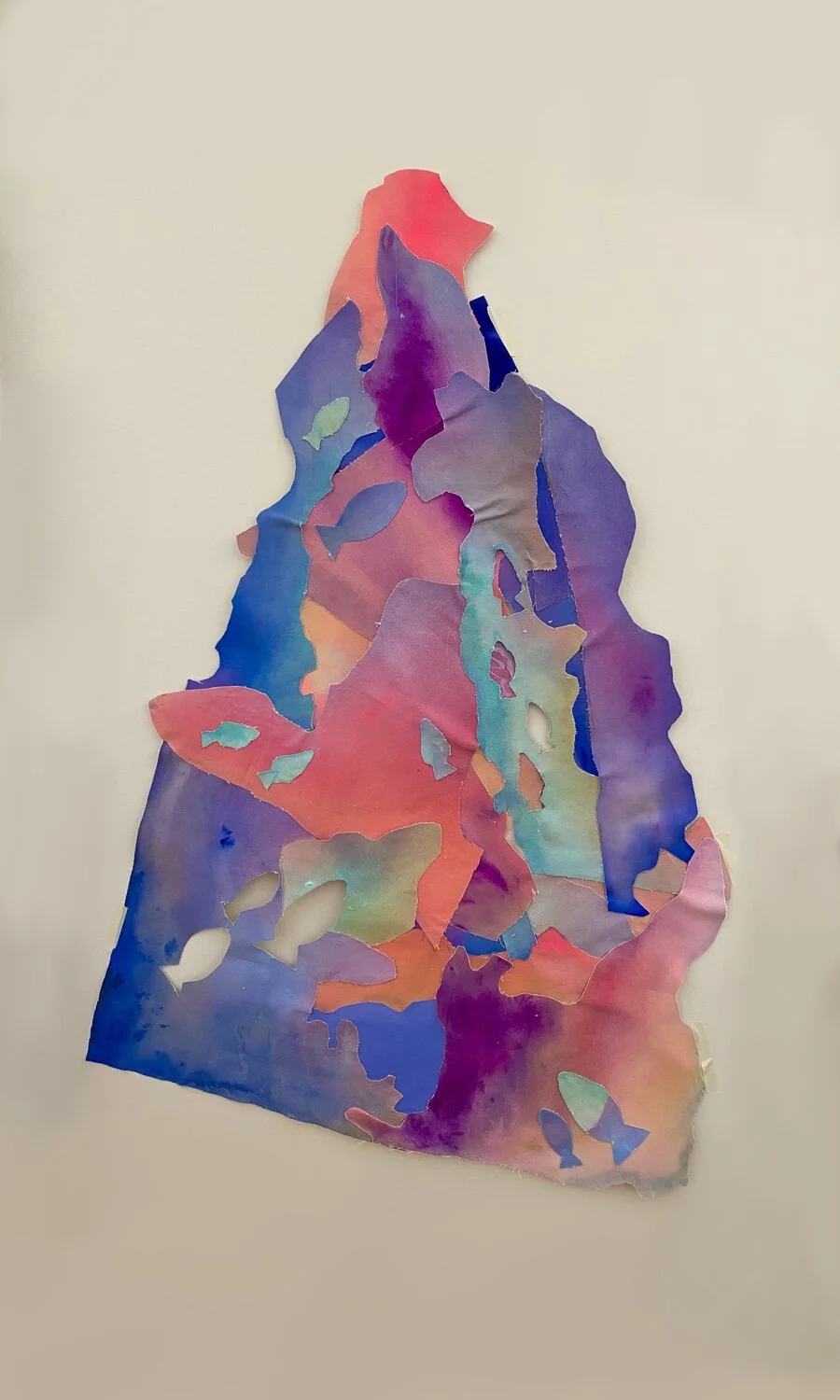 ALICIA HRVATIN, 3RD YEAR, WAVE INTERRUPTED, ACRYLIC/STAIN PAINTING ON CANVAS AND COLLAGE OF PAINTINGS OWN PIECES, 4’ X 3’, 2021
