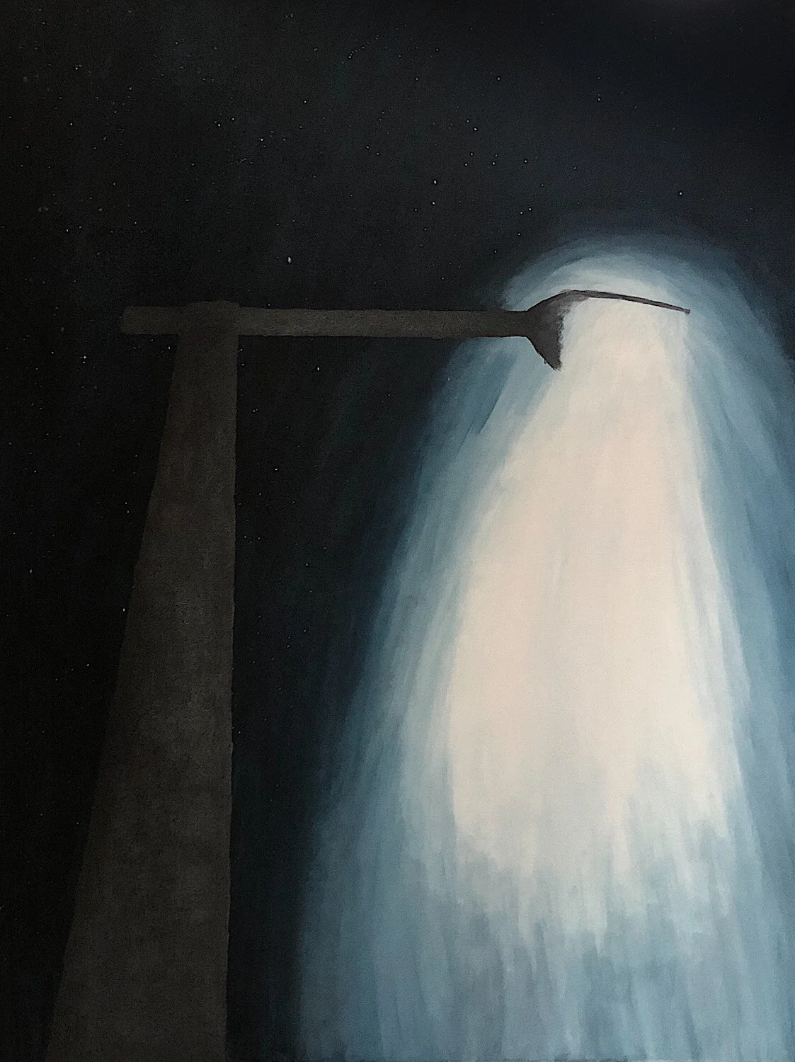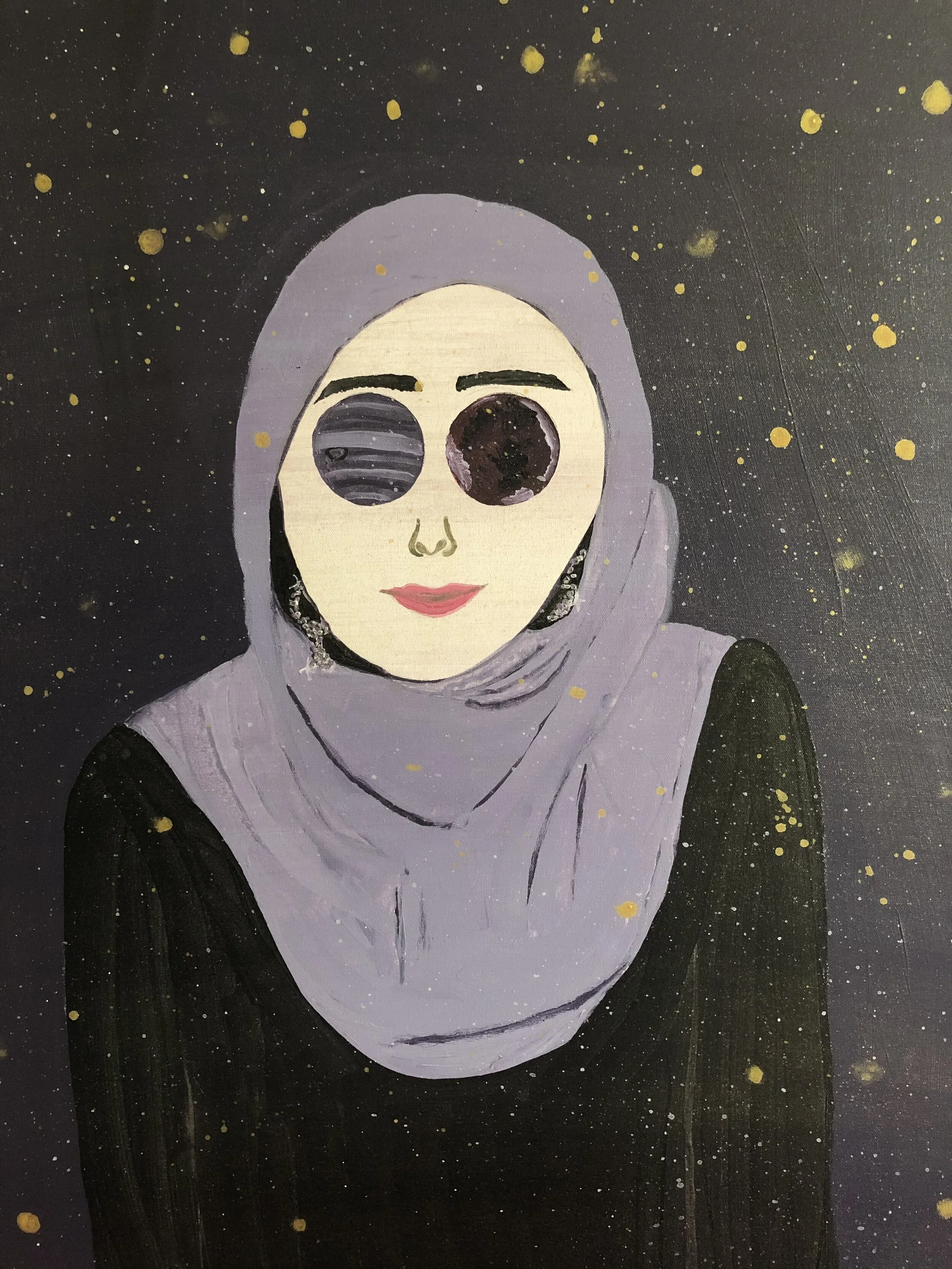CELISHA HOSEIN, 6TH YEAR, LIGHTS’, OIL AND ACRYLIC ON CANVAS, 30” X 40”, 2020 - A commentary on the way the city lights obliterate the stars at night.