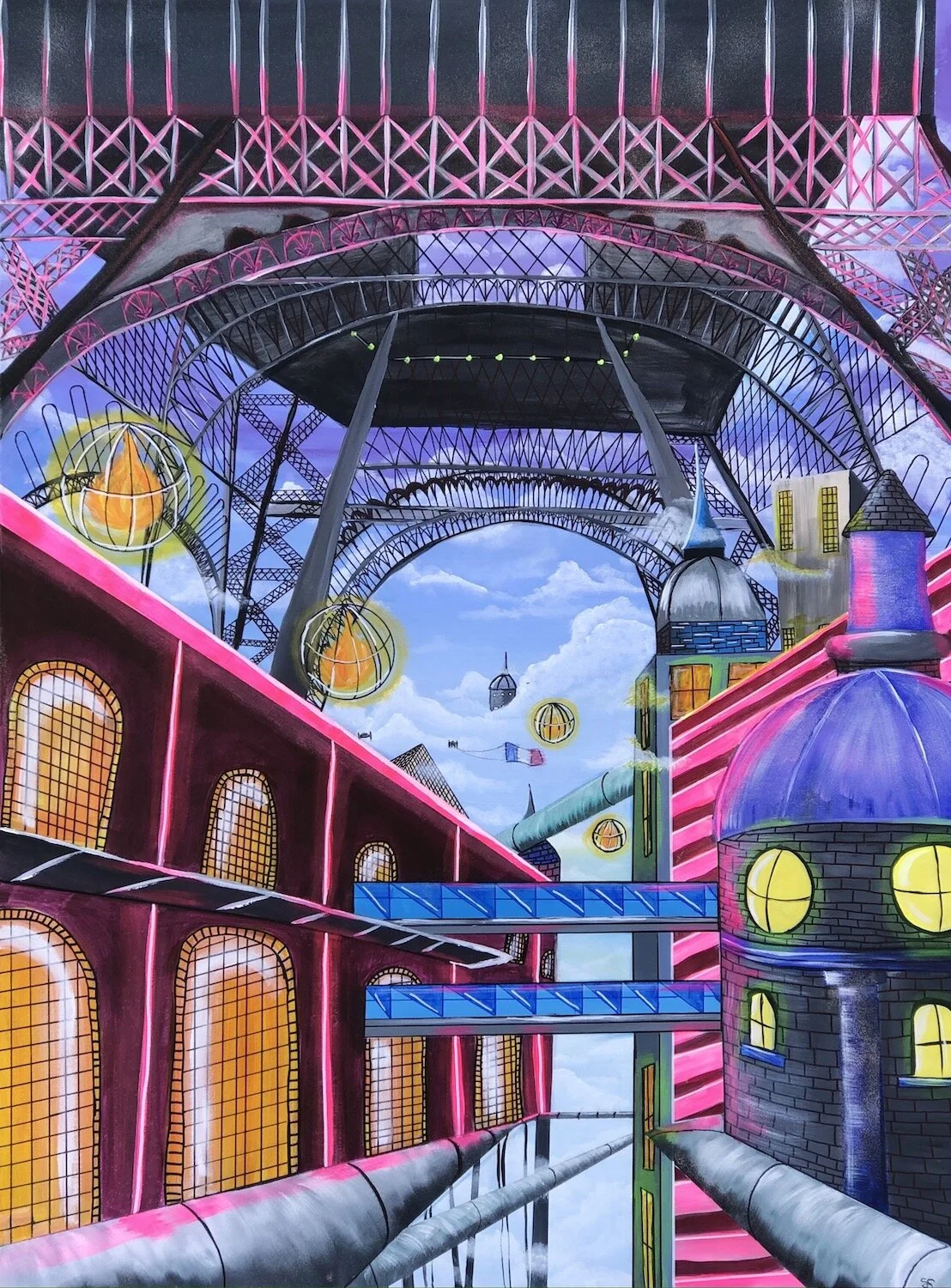 SASHA NANDAN-SUTHERLAND, 5TH YEAR, PARIS 3000, ACRYLIC PAINT, 48” X 36”, 2020