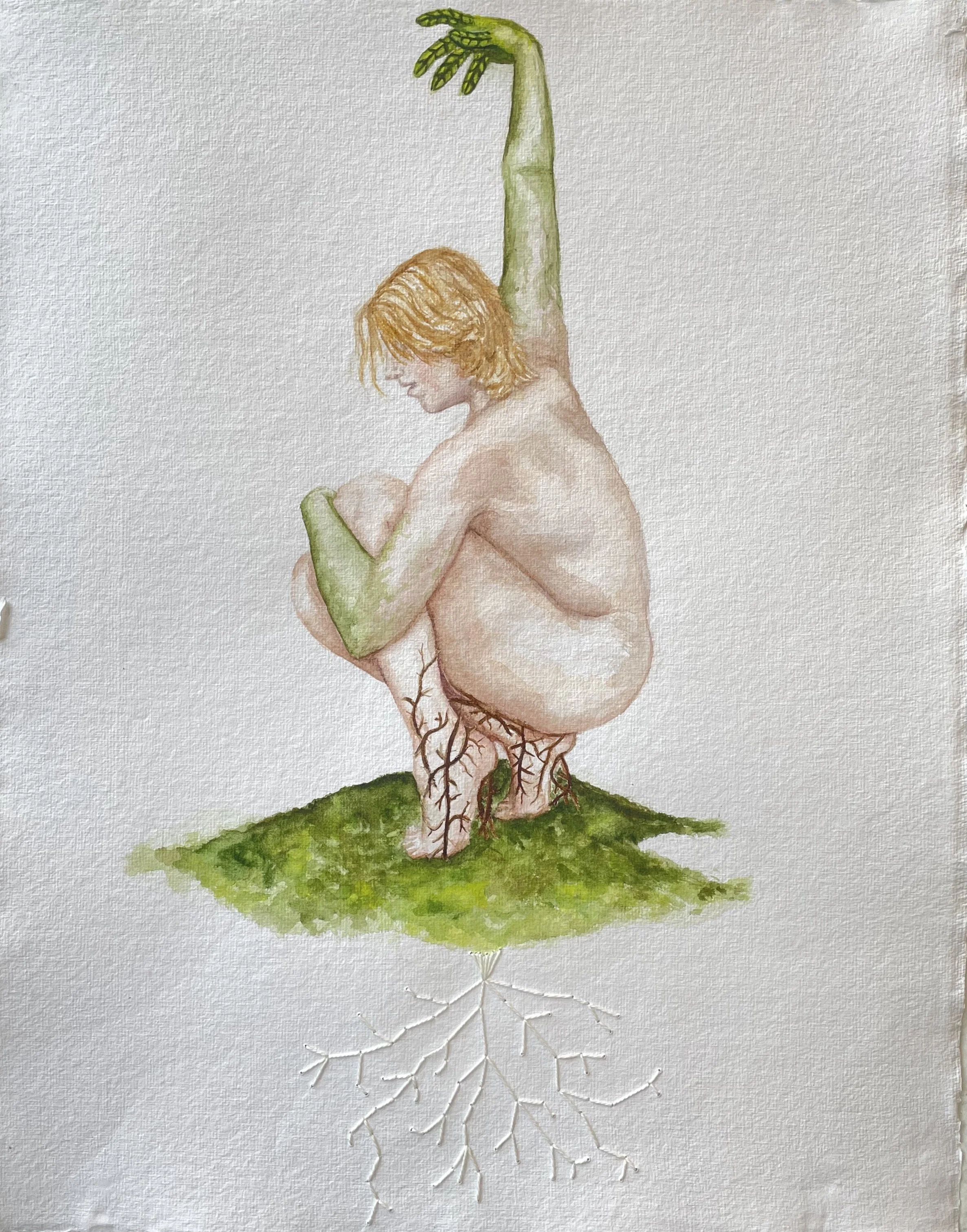 ROBERT OWEN, 4, GERMINATION, WATERCOLOUR AND EMBROIDERY FLOSS ON PAPER, 20" X 16", 2021