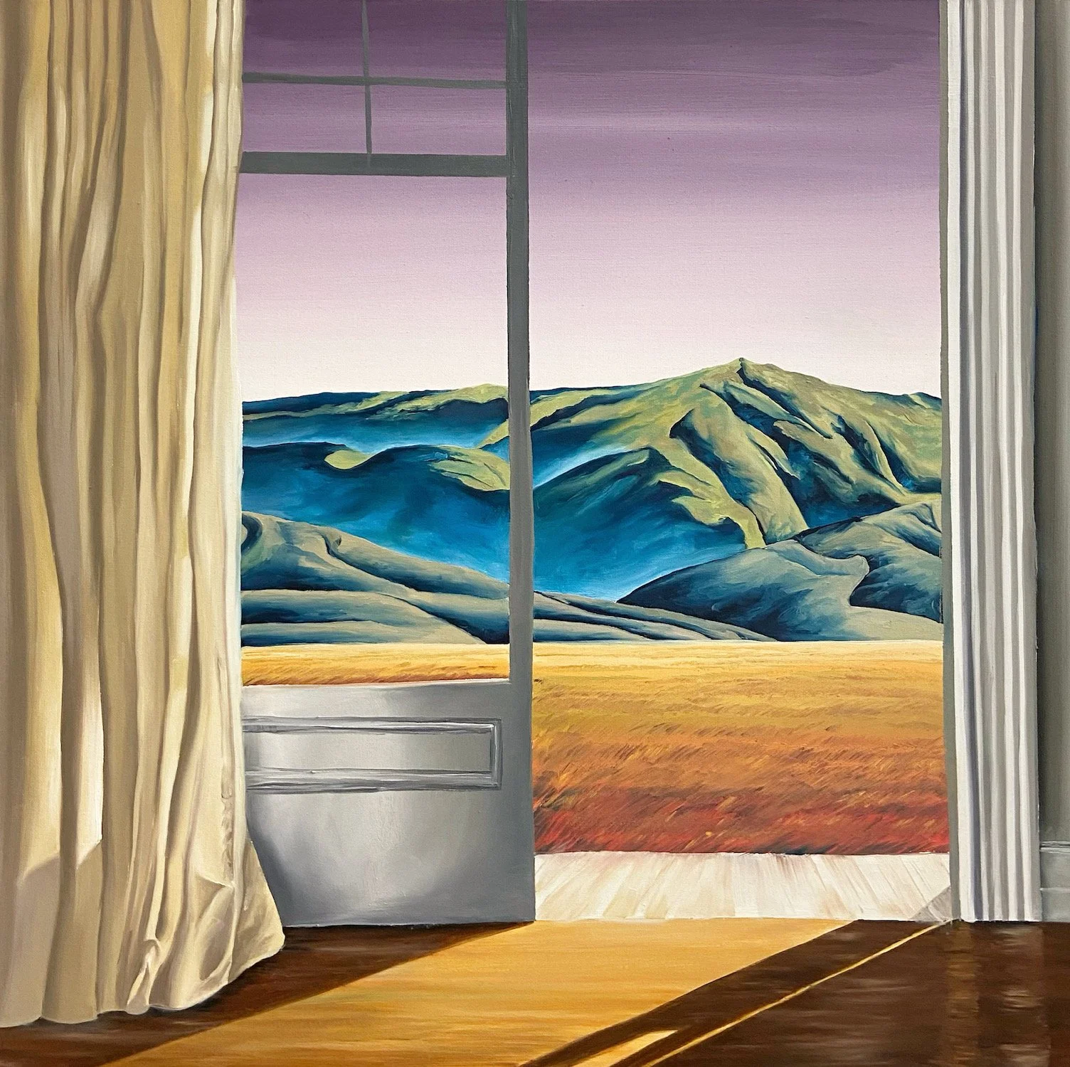 CHELSEA FRATTURA, 5, SANCTUARY, OIL ON CANVAS, 36 X 30 X 1, 2021. Sanctuary depicts the inner spaces we create to reside in as a feeling of home.