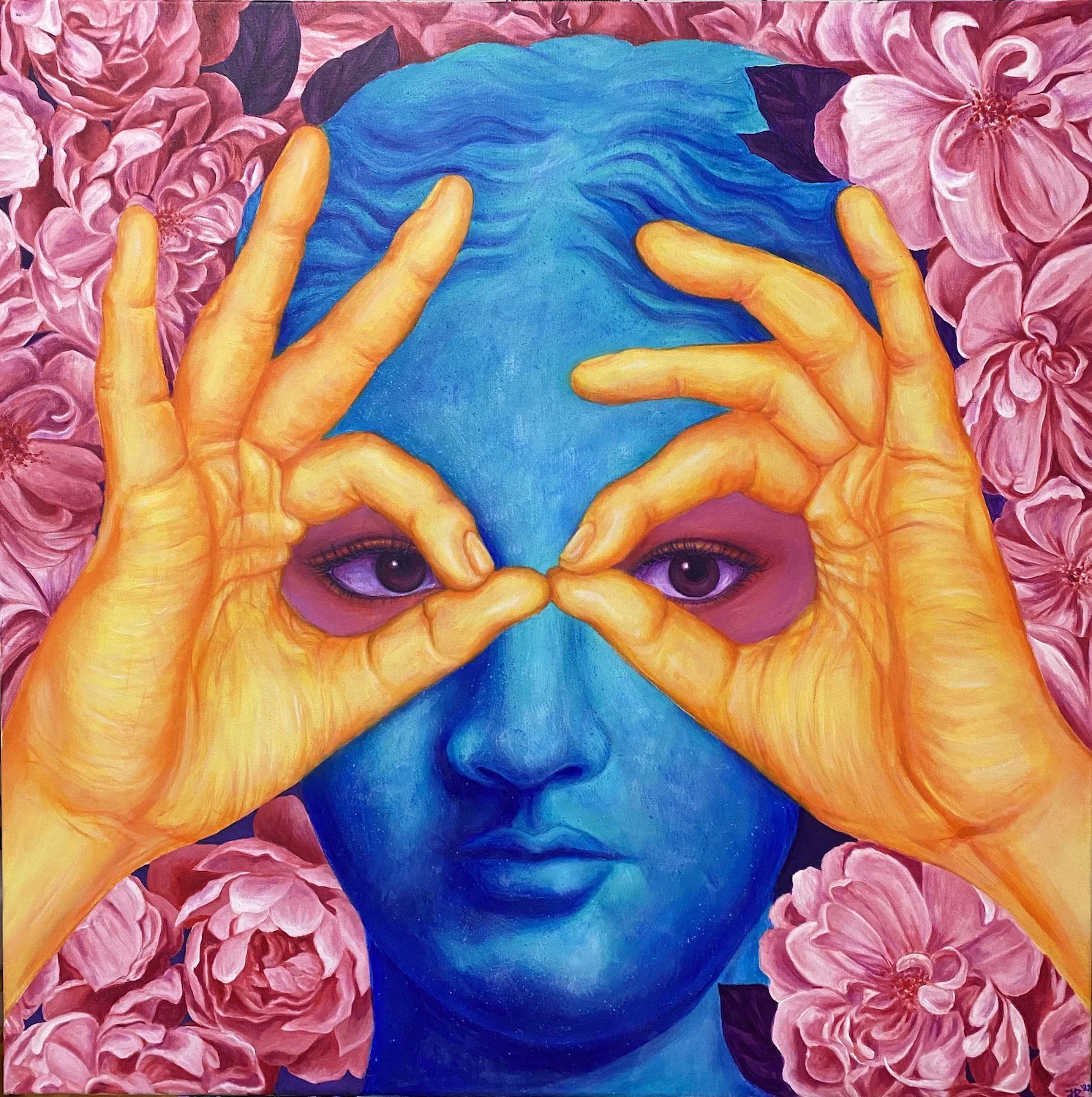 EILEEN JEN, 4, ALTITUDES, ACRYLIC ON CANVAS, 30x40, 2021, Altitudes revisits beauty standards from the Tang Dynasty as an analysis of societal pressures and expectations.