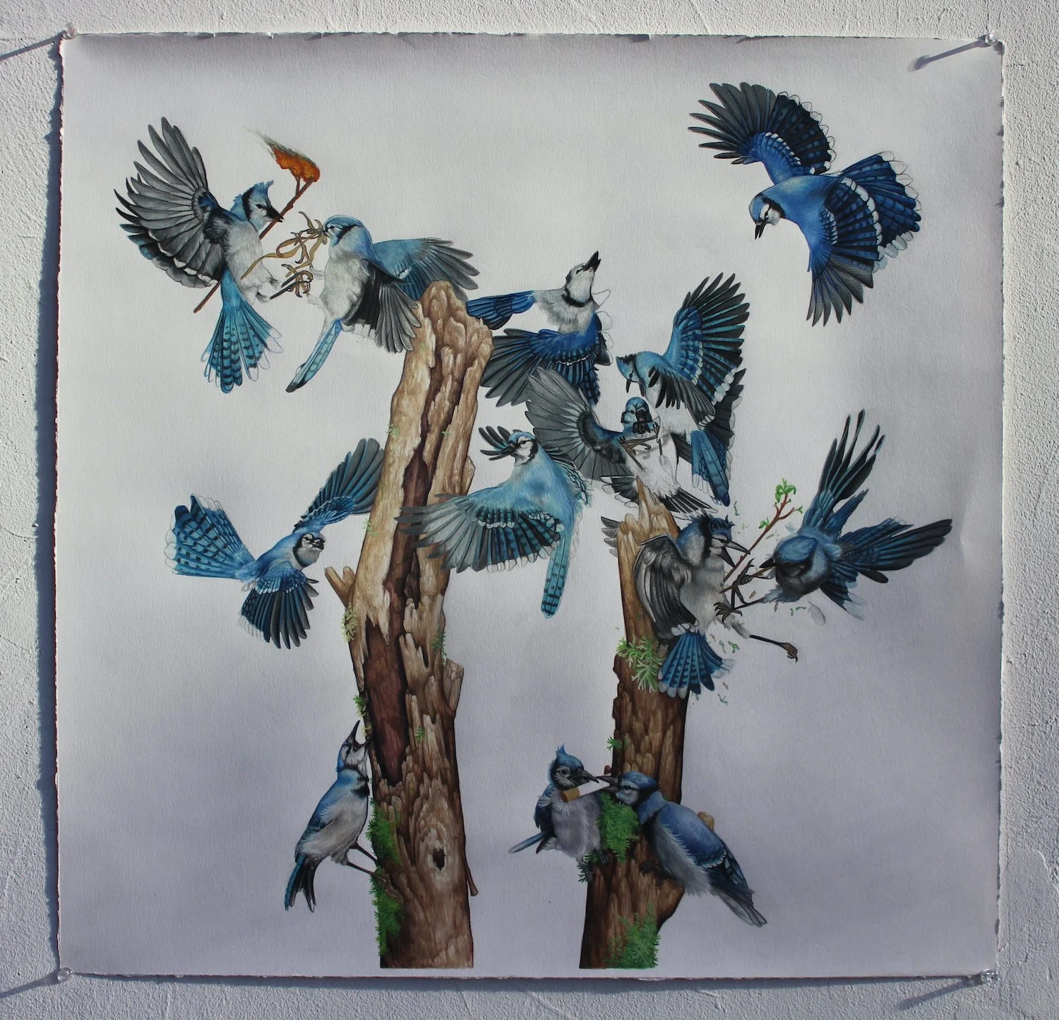 SIMON PELLERIN, 4, DAMAGE CONTROL, COLOURED PENCIL, WATERCOLOUR AND GOUACHE ON PAPER, 24x24, 2022.