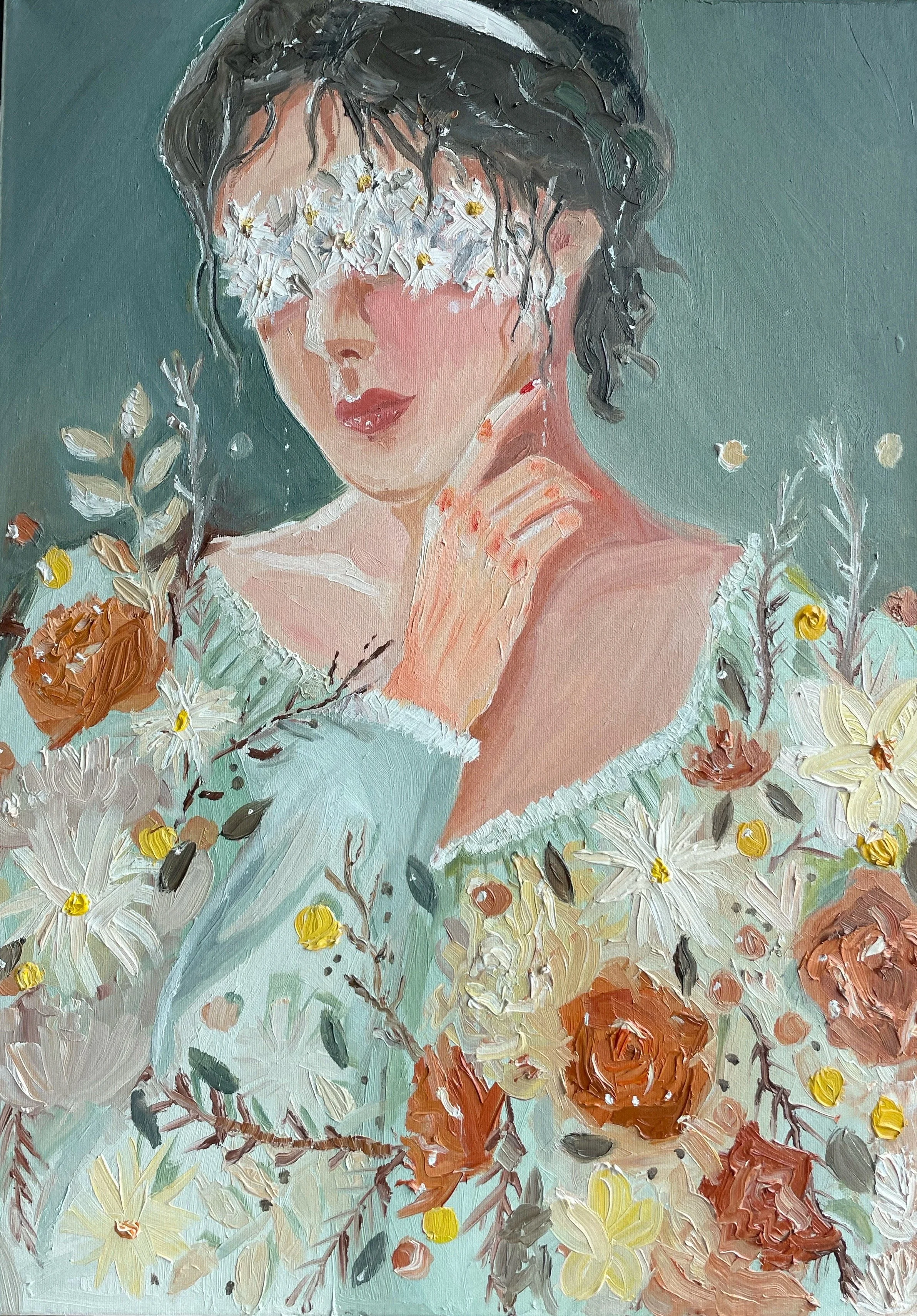 XIER WU, 4, WOMAN AND FLOWERS, OIL, 26''X34''X3/4 '', 2021.