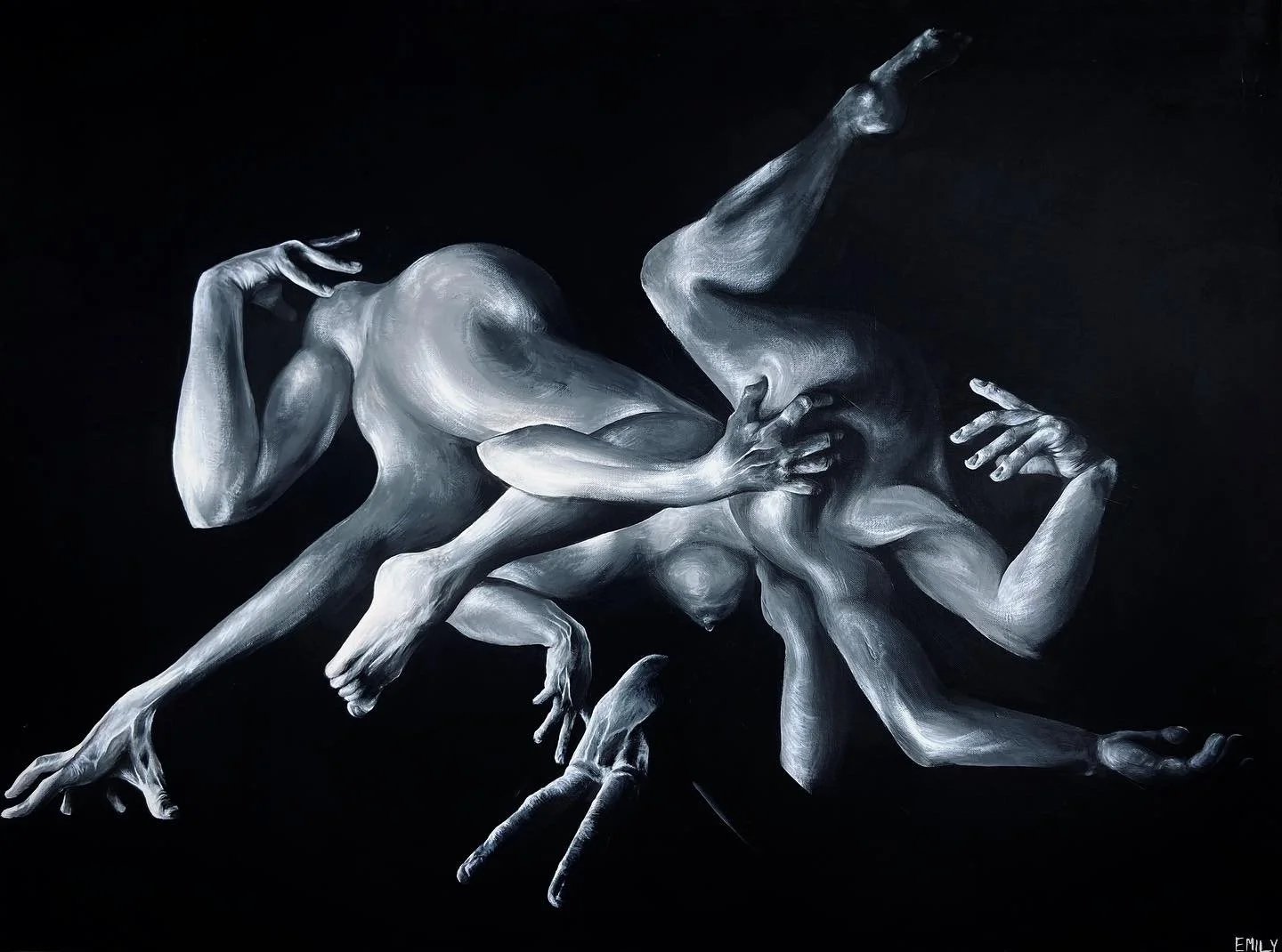 YIKE CHEN, 3, FALLING, OIL ON CANVAS, 30x40 INCHES, 2022.