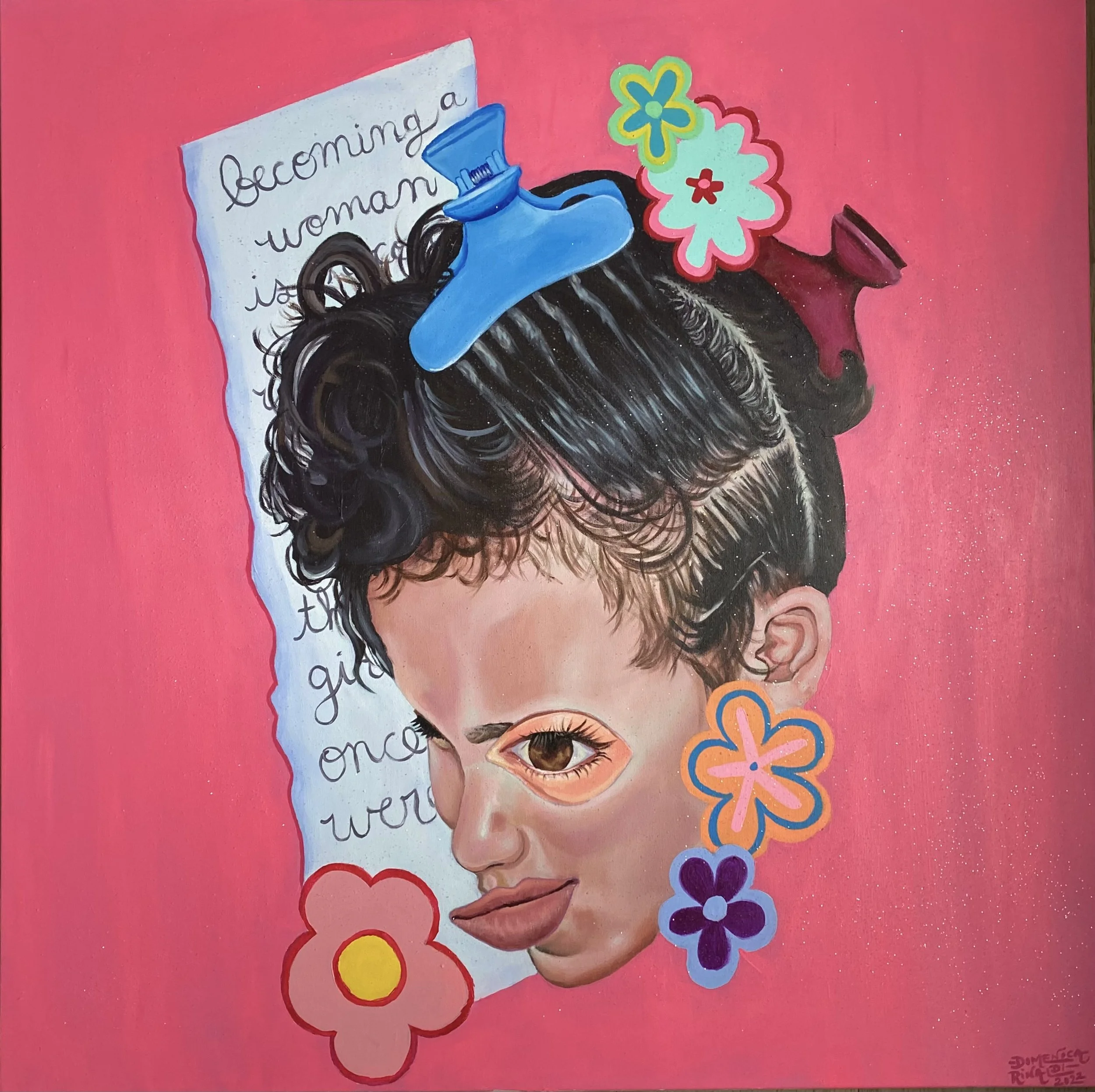 DOMENICA RINALDI, 3, BECOMING A WOMAN IS RECONNECTING WITH THE GIRL YOU ONCE WERE, ACRYLIC ON CANVAS, 36X36, FEBRUARY 2022