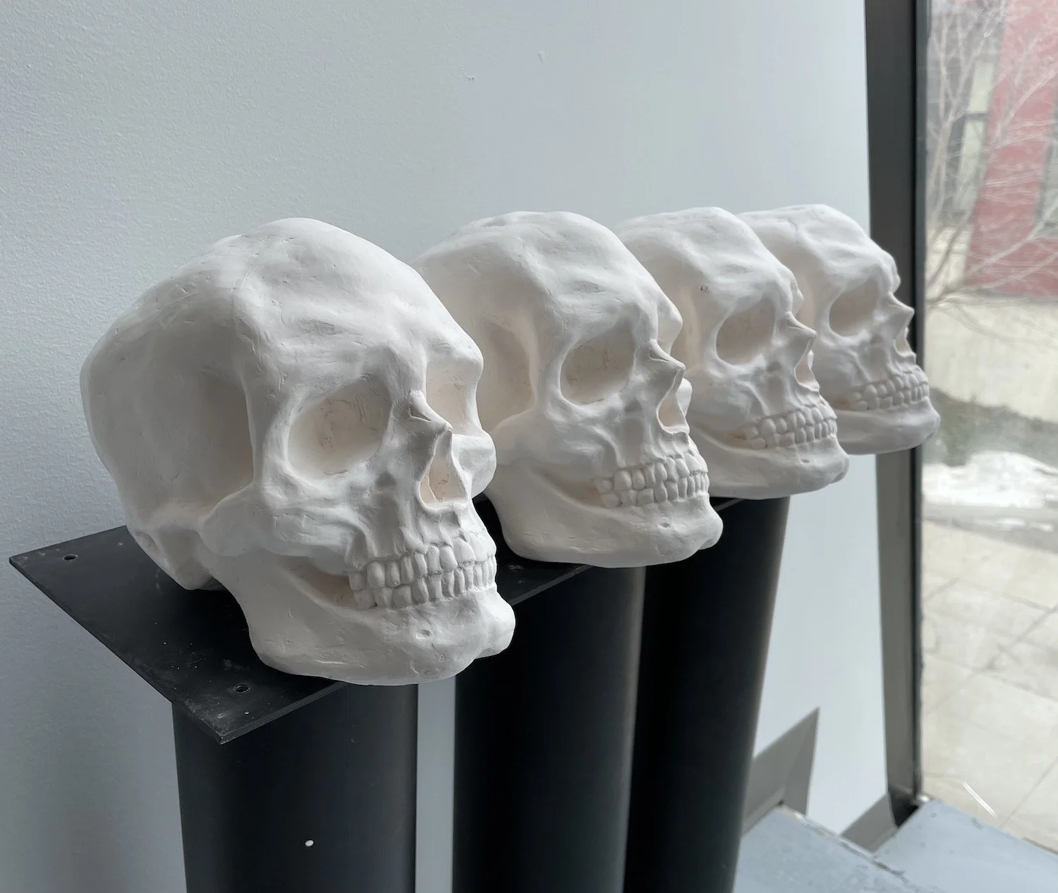 ANDREW ABBALLE, 4, THINGS ARE NEVER AS THEY SEEM, PORCELAIN, 8x6x9.5, 2022. "Things are not as they seem" began as a material exploration of ceramics, the deformed and melting skull begs the viewer to question not only reality as it is perceived, but also themselves and others.